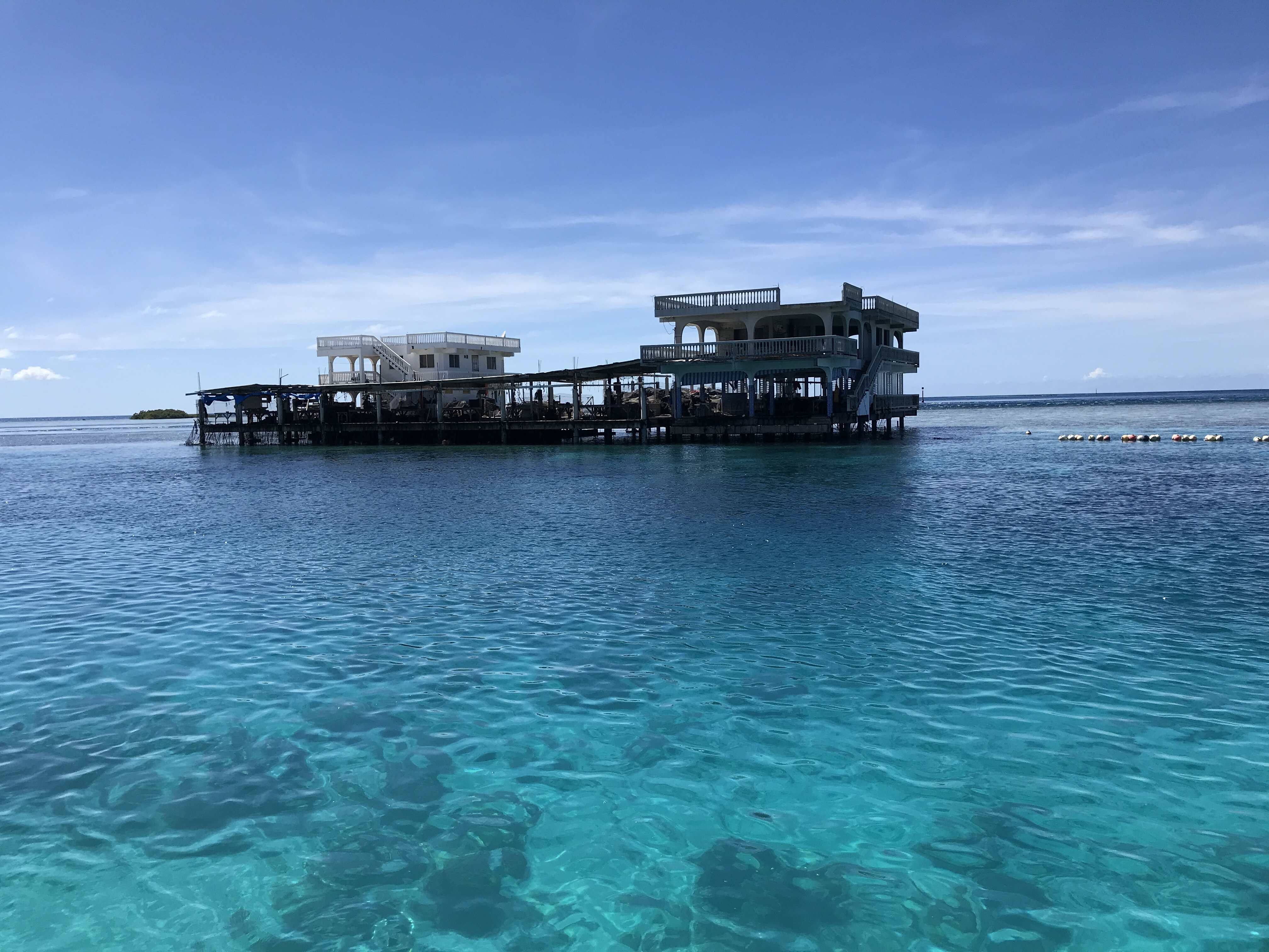 Fishermen passed by Teresia in bright colored small powerboats. Their gentle wake rustled the pearl farm buoys in the water, knocking against each other in canon. Black tip and white tip reef shark fins cut through the water nearby above the reef. Nicolas told us not to swim in the main channel because that’s where big pelagic sharks pass through, like tiger sharks.