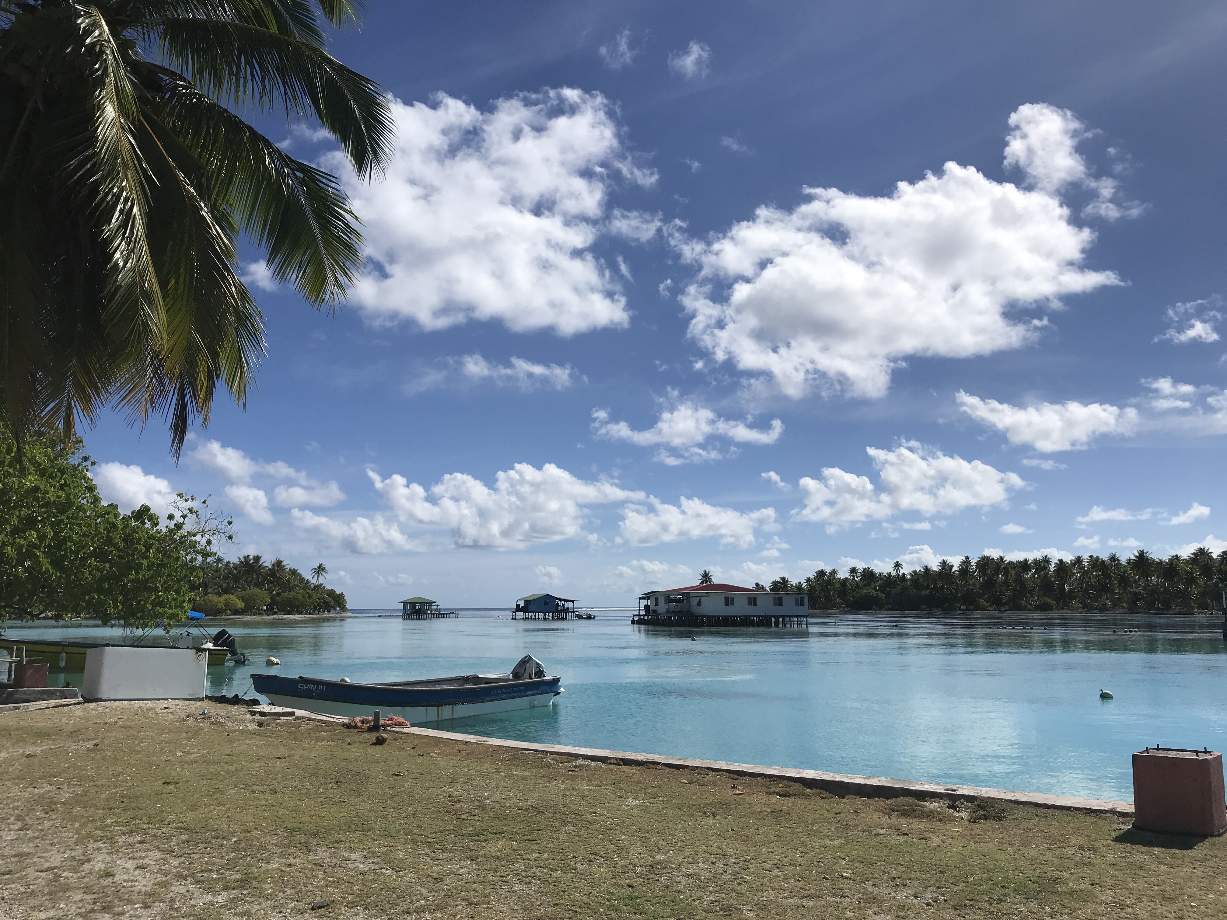 It looked improbable, a dozen masts poking out above the coconut tree line, with a few buildings tucked near the beach and a tractor lined up on a concrete ramp into the sea. We anchored nearby and hoped to refill our gasoline, propane and find some WiFi at this remote outpost.