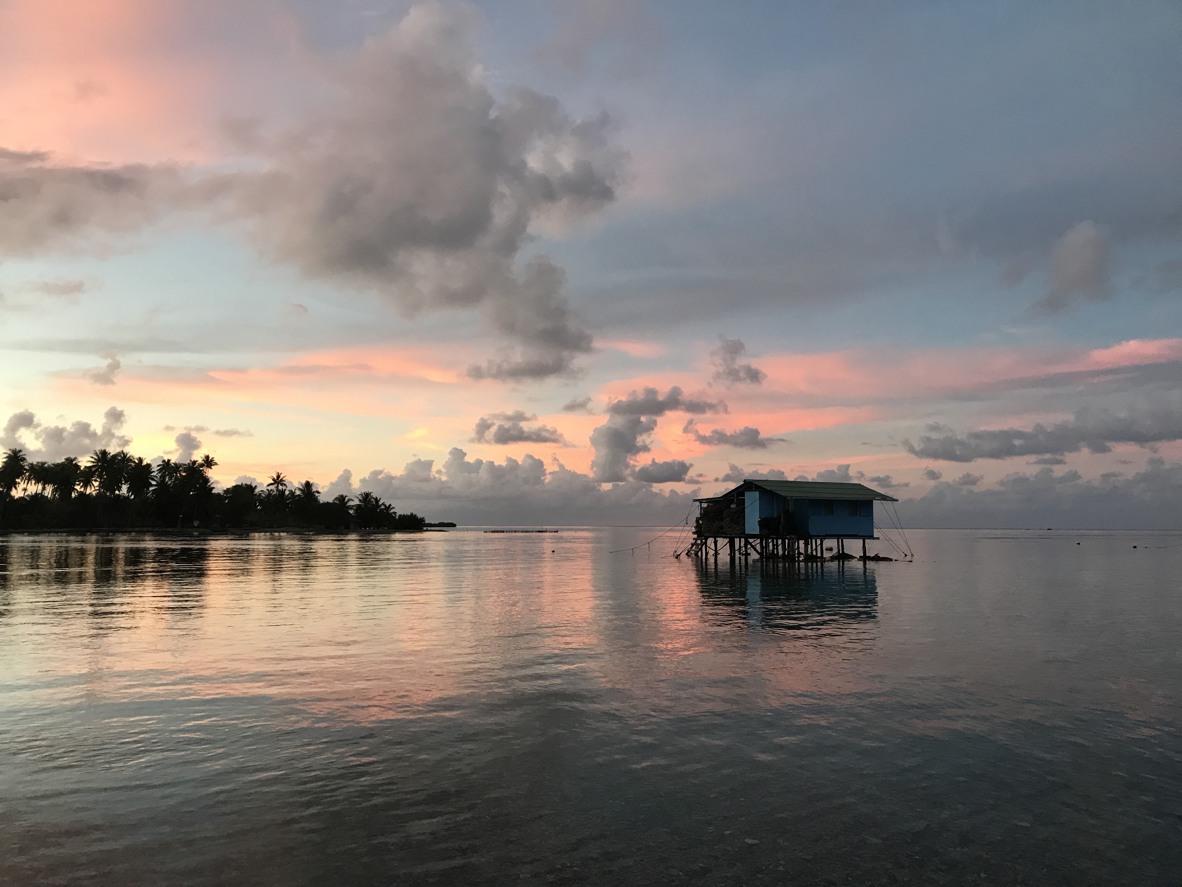 The most memorable sight from French Polynesia that I remembered from visiting as a kid is how the sunset and sunrise water colors are the same range of colors as the local pearls. In Niutahi I saw this effect again—soft aquamarine, violet, pink, smoke grey, green black all swirling together above and below the horizon, shimmering off and through the clean air and water. For those moments, every day, you live in a gemstone.
