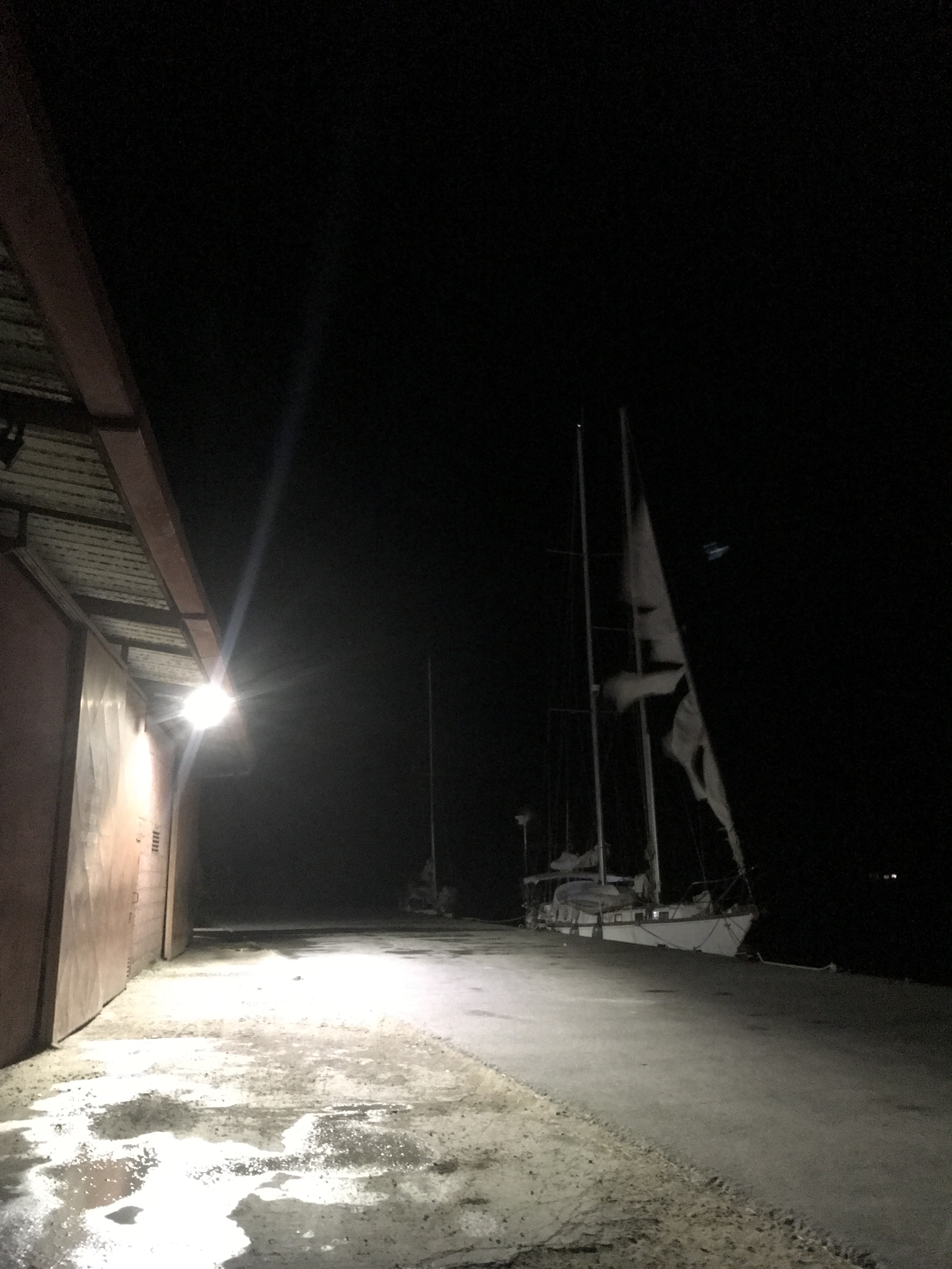 A little girl danced wildly with a transparent white scarf in the wind and ran up to me to join her. I danced with her for a while then sat down on the wharf edge to star gaze and write. A high powered flash light broke my concentration and beamed through the dark pass along the wharf. The light belonged to a fishing boat that was guiding a sailboat through to safety. A double masted sailboat that came through the abyss with a badly ripped jib sail fluttering in the wind, still wrapped around the forestay.