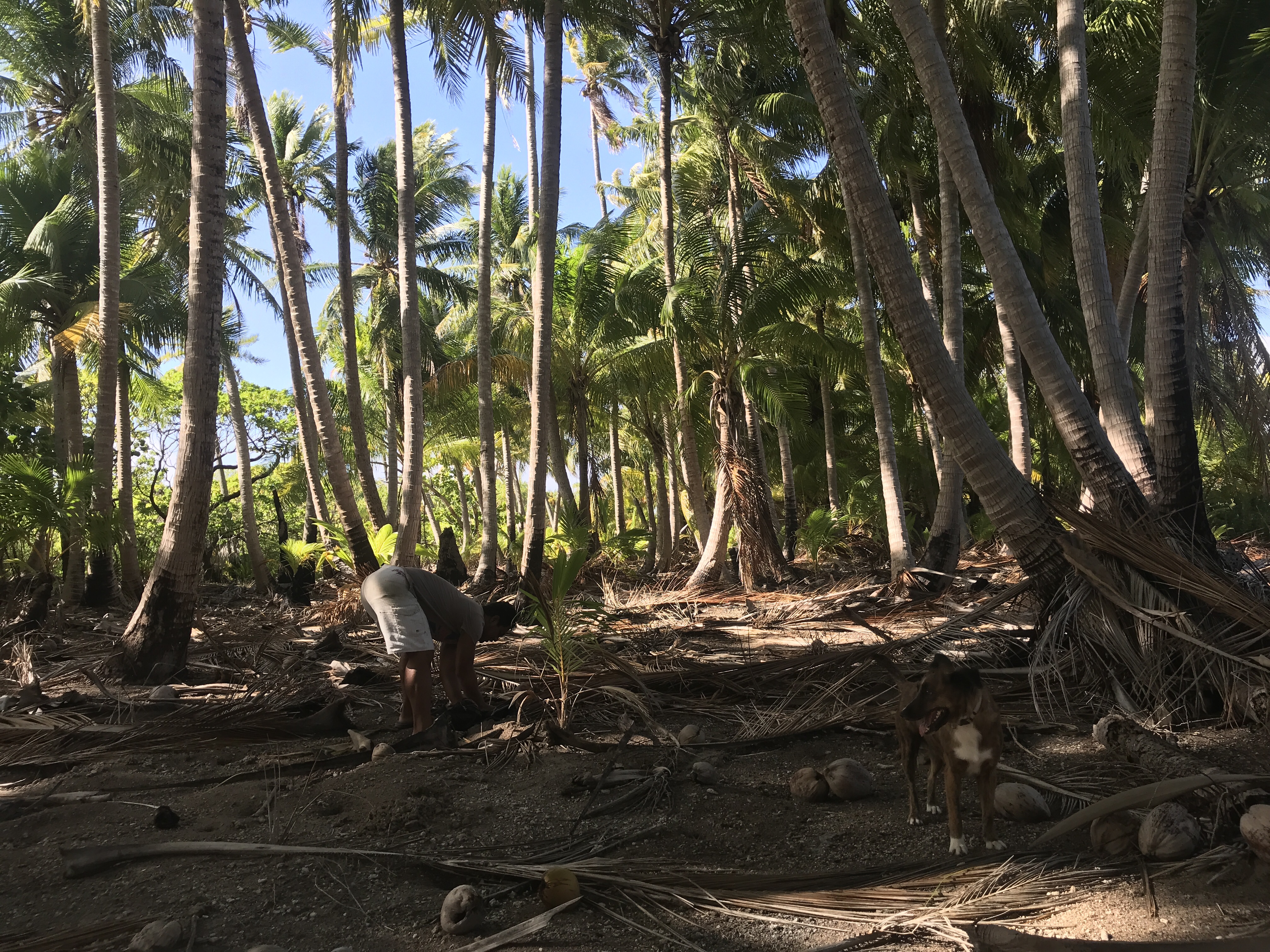The current could’ve easily swept me out to sea, so I cut back across the channel to Valentine and Gaston’s beach. Valentine mixed up a batch of icy cold tropical pink grenadine juice in a bucket for the guys working in the copra fields. She poured us each a glass. A few days prior she was distant, eyeing this outsider with wariness and formal politeness. Now, she confided in me about family drama with tears in her eyes, happy to have someone to listen to her, I gave her a bear hug. Over many years traveling alone in rural places, I’ve learned that matriarchs like Valentine are to be respected and catered to, but not feared. They test you, try to scare you with rough talk or by ignoring you, and if you continue on, unafraid, helping in the right ways and staying close to the daily rhythms, the matriarch will slowly bring you into her world.