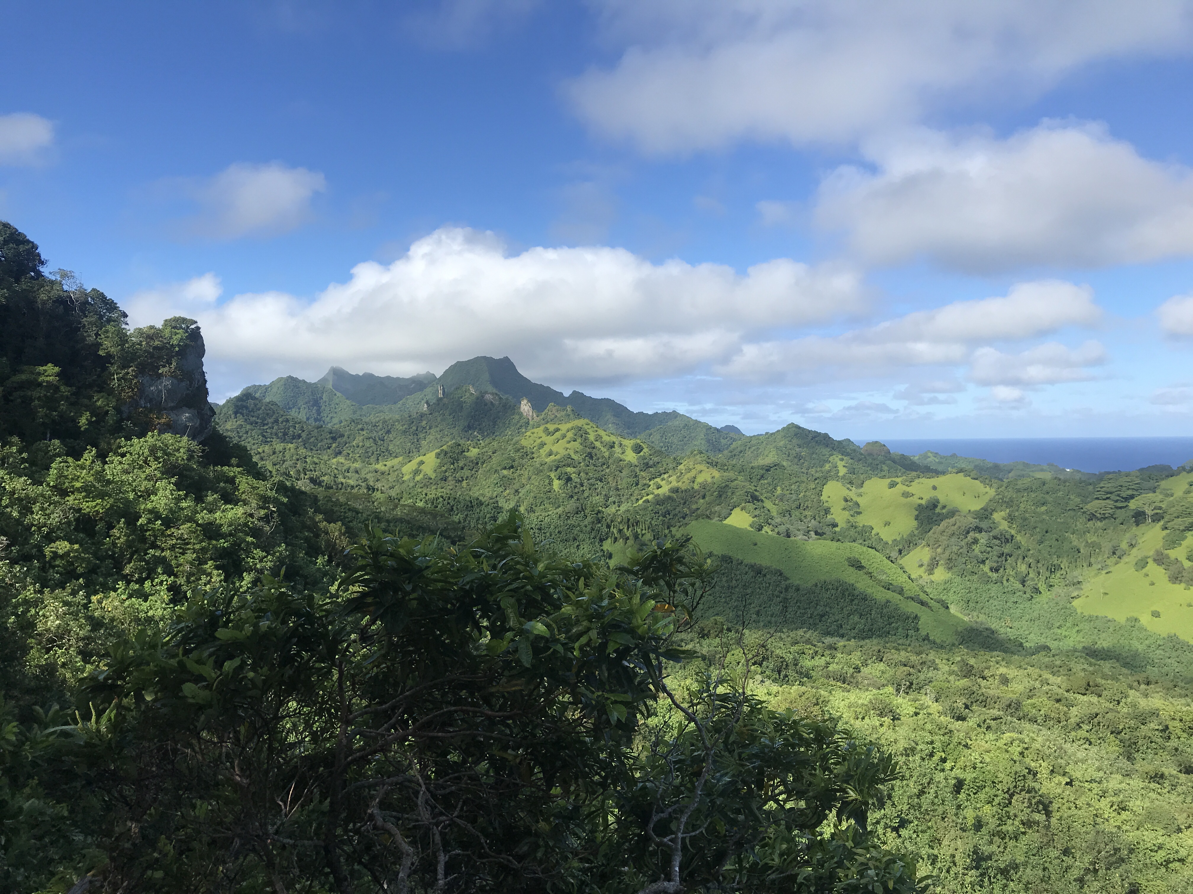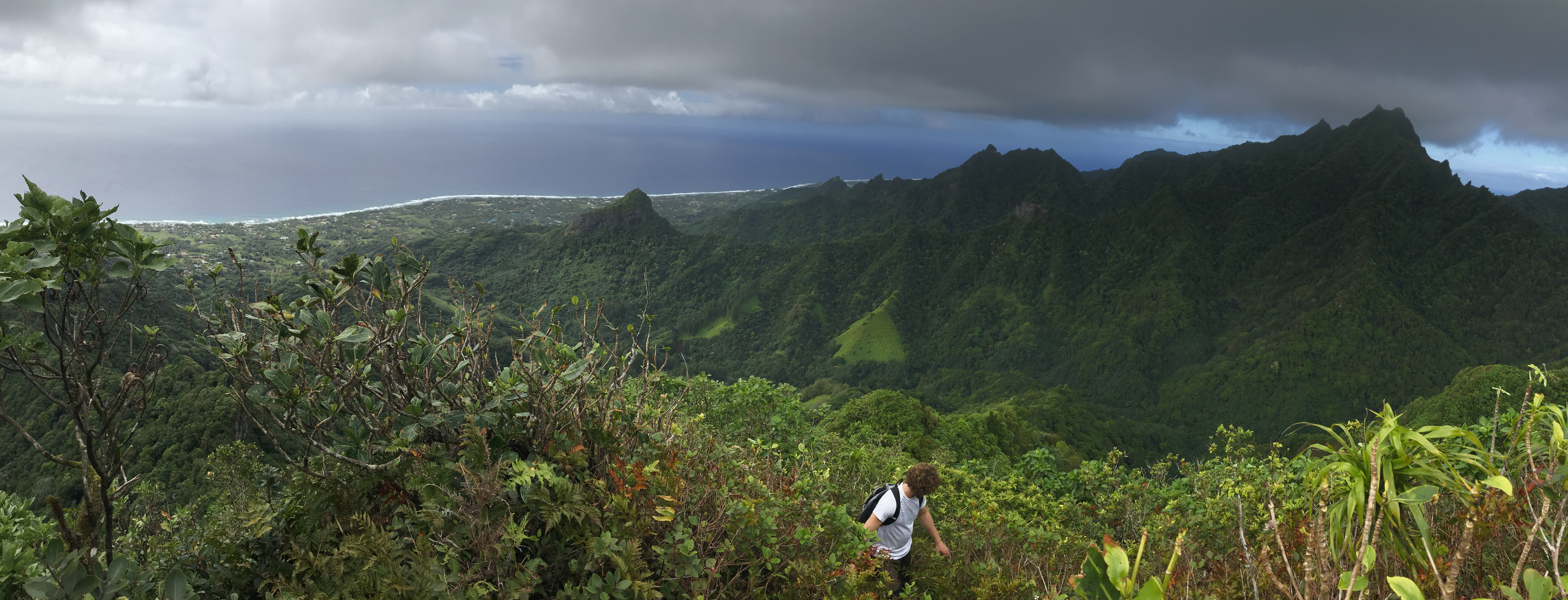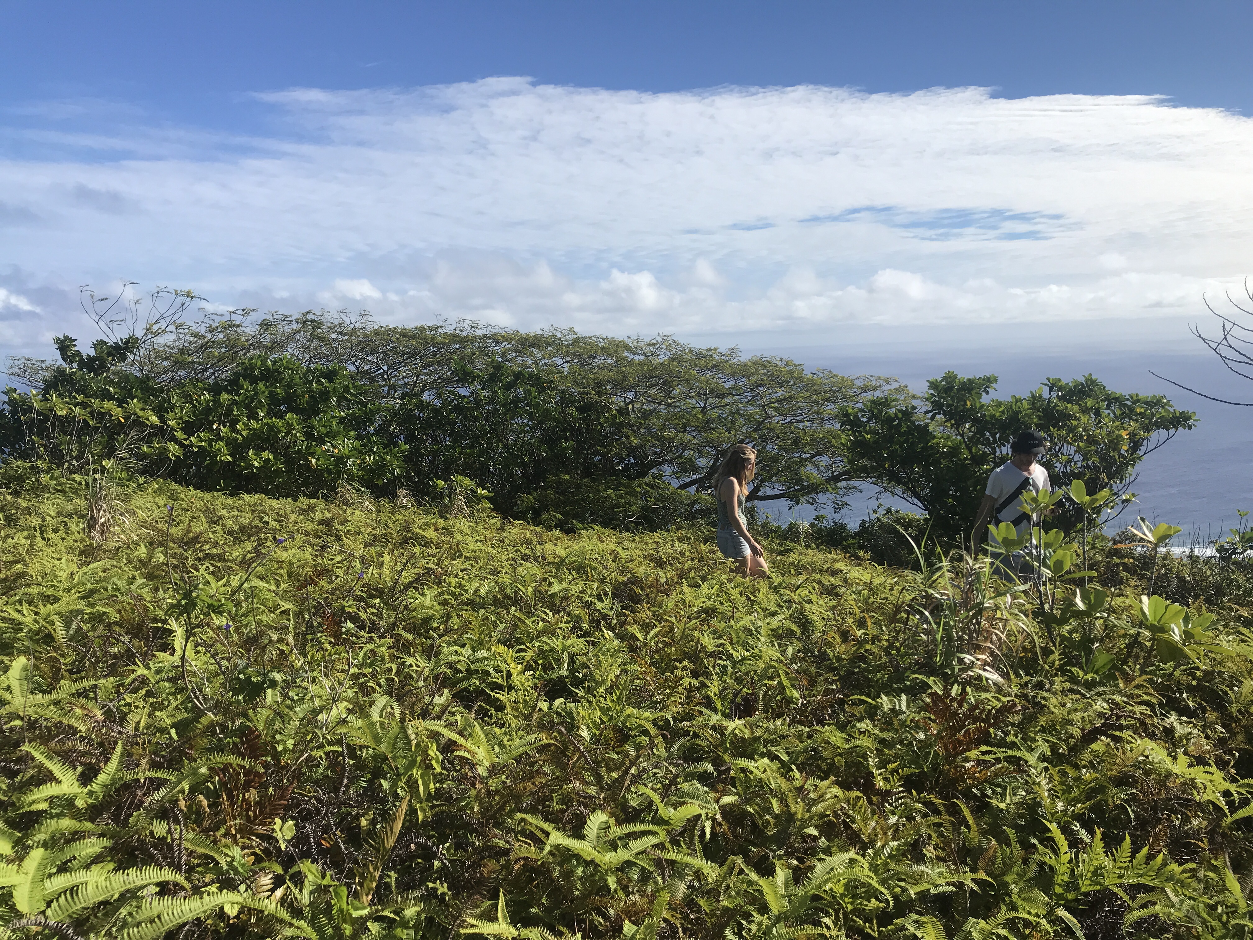 We all hiked up the Raemaru trail behind the hostel, which tucked into thick tropical forest after well-kept family plots ended at the mountain’s feet. The path opened onto steep crest line paths, red velvet soil cushioned our feet and ferns cascaded down the thousand foot precipice face to one side. I try to find a high point when exploring a new place, it makes me feel settled, able to internalize where I am more fully. Like a cat exploring every inch of their new house.