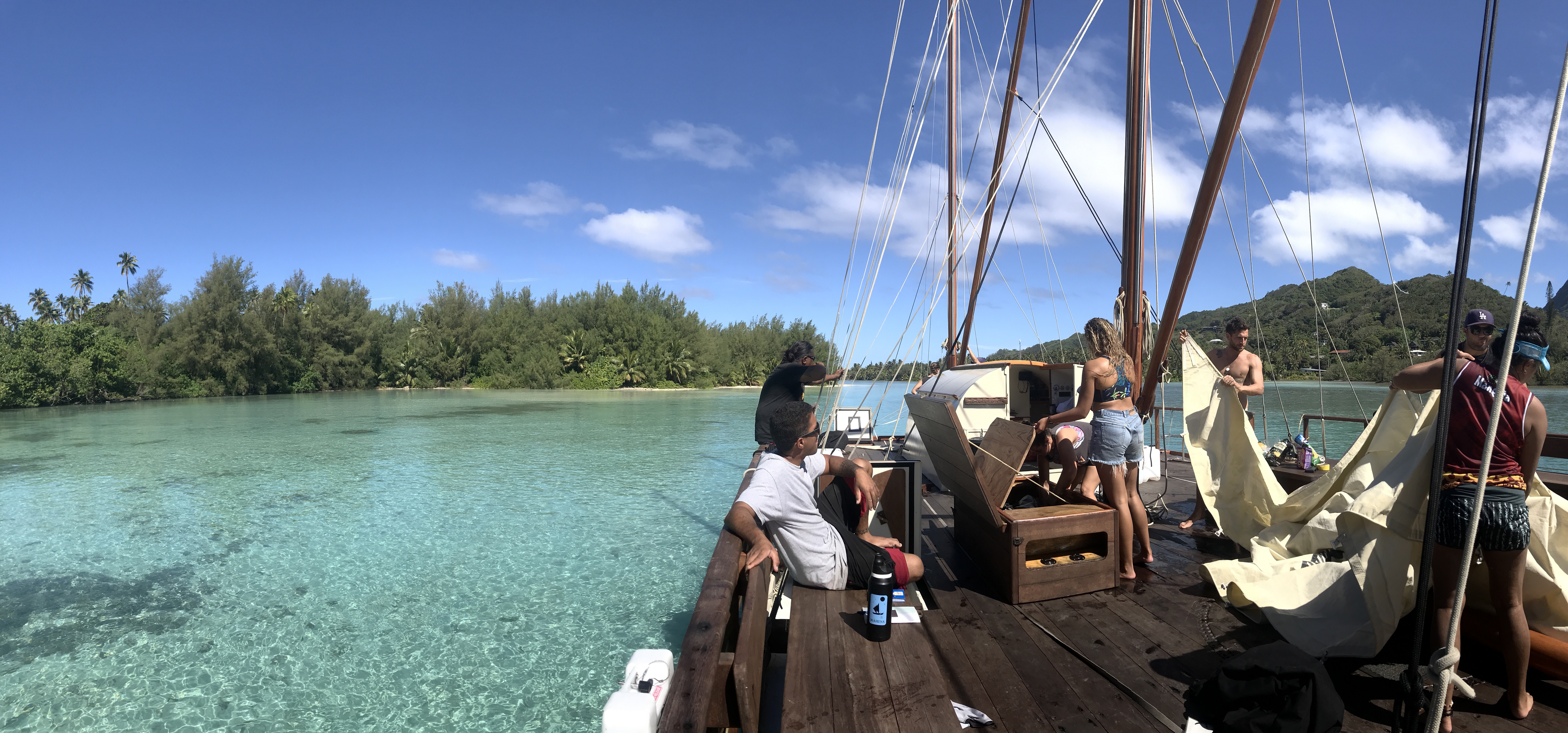 I sailed with the crew as many times as I could before my departure. One day, a New Zealand Maori film crew visited to shoot an episode about traditional Polynesian celestial navigation. Navigators train for years to memorize over 600 constellations and to understand how to use them in relation to the swells and weather patterns to find small islands in the middle of the vast Pacific Ocean. Two of the young film crew had intricate Maori face tattoos, striking blueish black scroll line patterns, under and around the woman’s lips and where a full beard would be on the man. They expressed their gratitude to the Marumaru Atua crew for welcoming them back to the place where their ancestors originally departed from to discover New Zealand. This was not just a shoot for them, it was deeply meaningful for their personal and community stories.