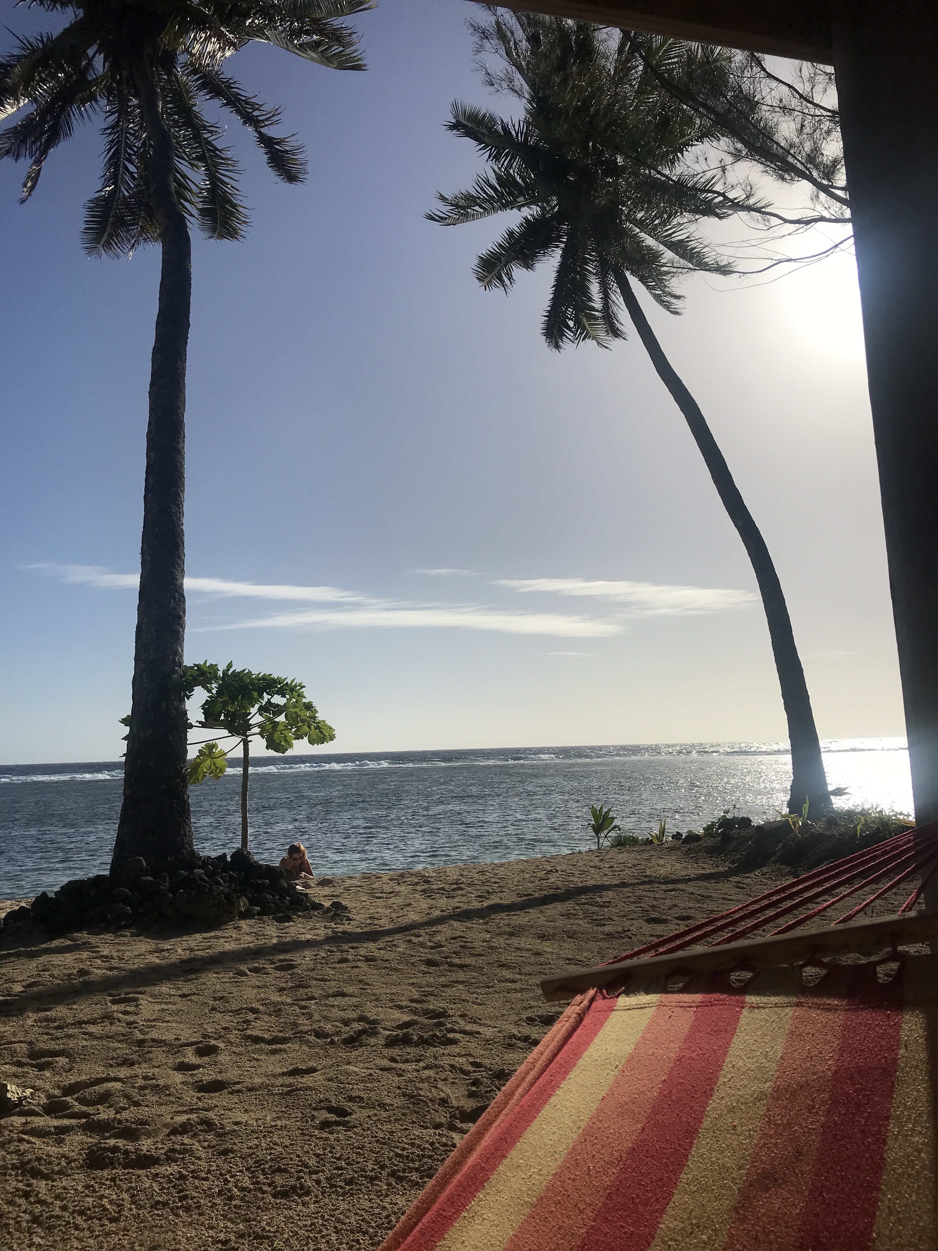 I got into my healthy routines, cooking vegetables, working out or doing yoga daily, hiking. I spent hours each day in the beach hammocks reading Blue Latitudes, a great book that Eric lent me about Captain Cook’s voyages through the South Pacific and beyond. It was perfect reading about places I’d been and about places I would visit, learning about their history in a way that sticks for me.
