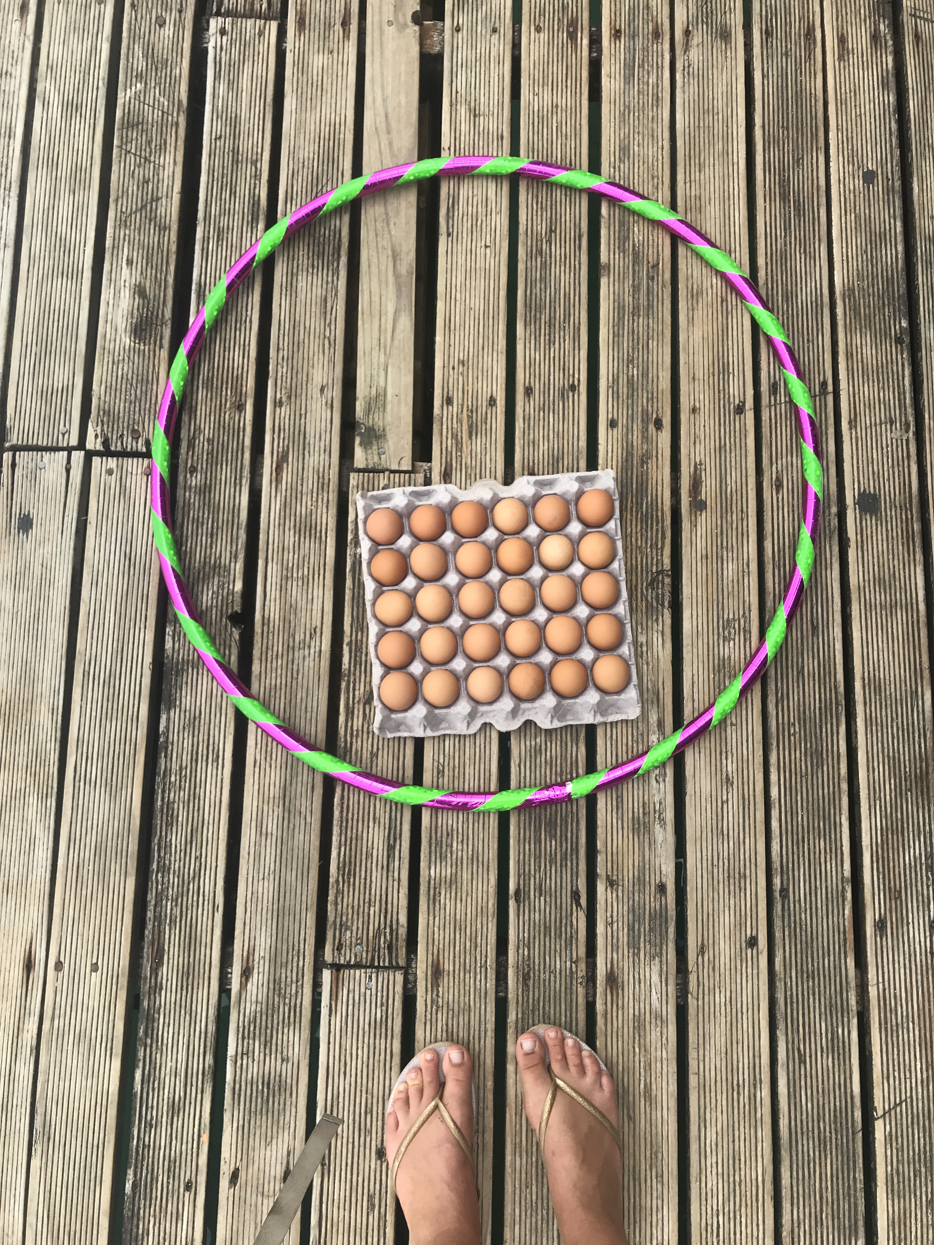 First orders of business, find ever elusive chicken eggs and buy that sparkly magenta and lime green hula hoop at the variety shop. I decided to fully embrace having a 55 foot catamaran to myself and the hula hoop called out to me from its lonely hook on the wall, promising fun.