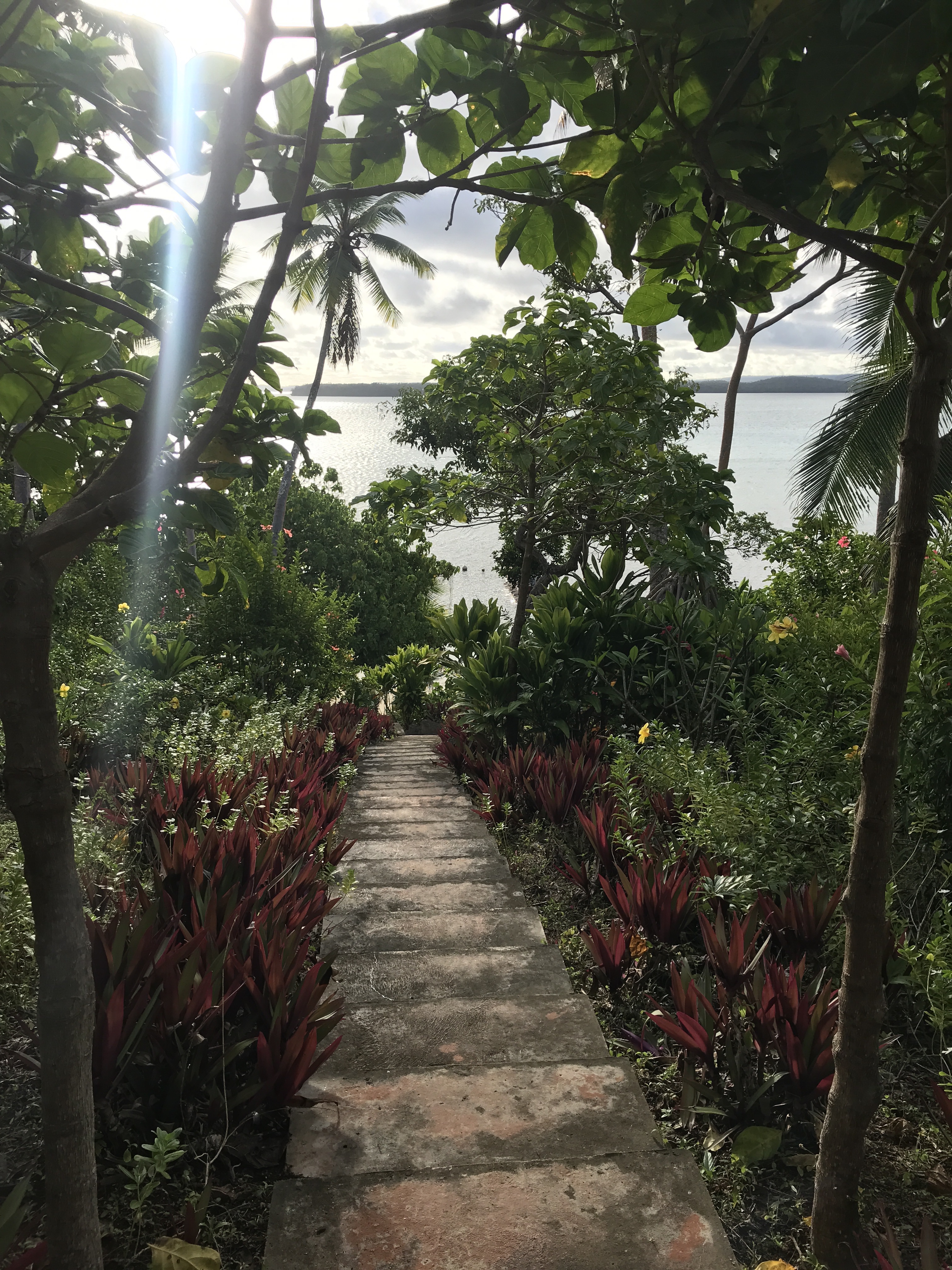 An easiness comes on the gentle winds. Kids run around in their school uniforms after the last bell and jump in the sea by the central open market. Women wear a mix of traditional and modern clothes. They wrap woven barkcloth around their waists and tie the voluminous covering near the top with cord. Some men wear straight-cut shin length skirts, bound at the waist with a wide band of flat woven barkcloth. It’s a smart look with their pressed collared shirts tucked in. I felt silly in my synthetic active wear.