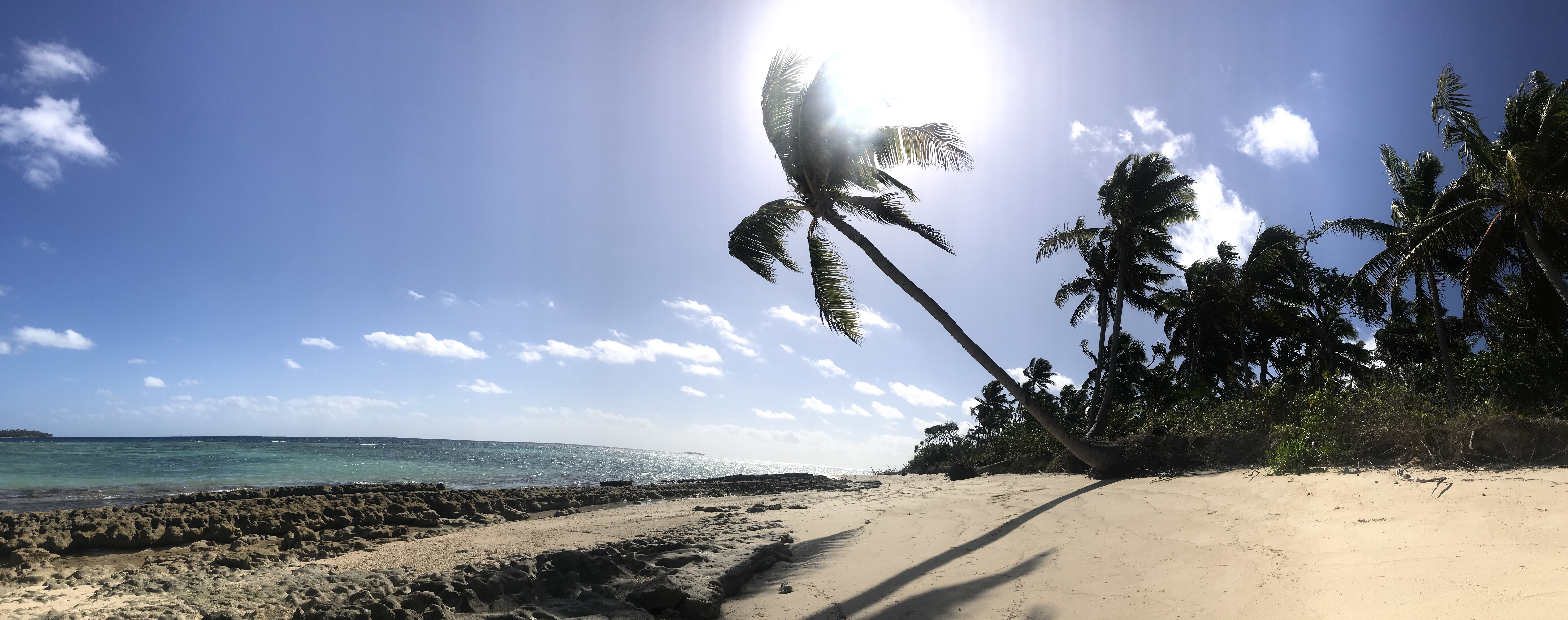 We picked up anchor and sailed an hour south, away from the main town and back into peaceful coral atoll wildness. Lauren worked as a whale swim tour guide at an eco resort here so she guided us into the anchorage through the reef. Coconut palm forest hugged a long white sand beach, with blue sky above and turquoise clear water below. We all smiled, ready to relax and enjoy tropical paradise for a while before heading toward New Zealand.