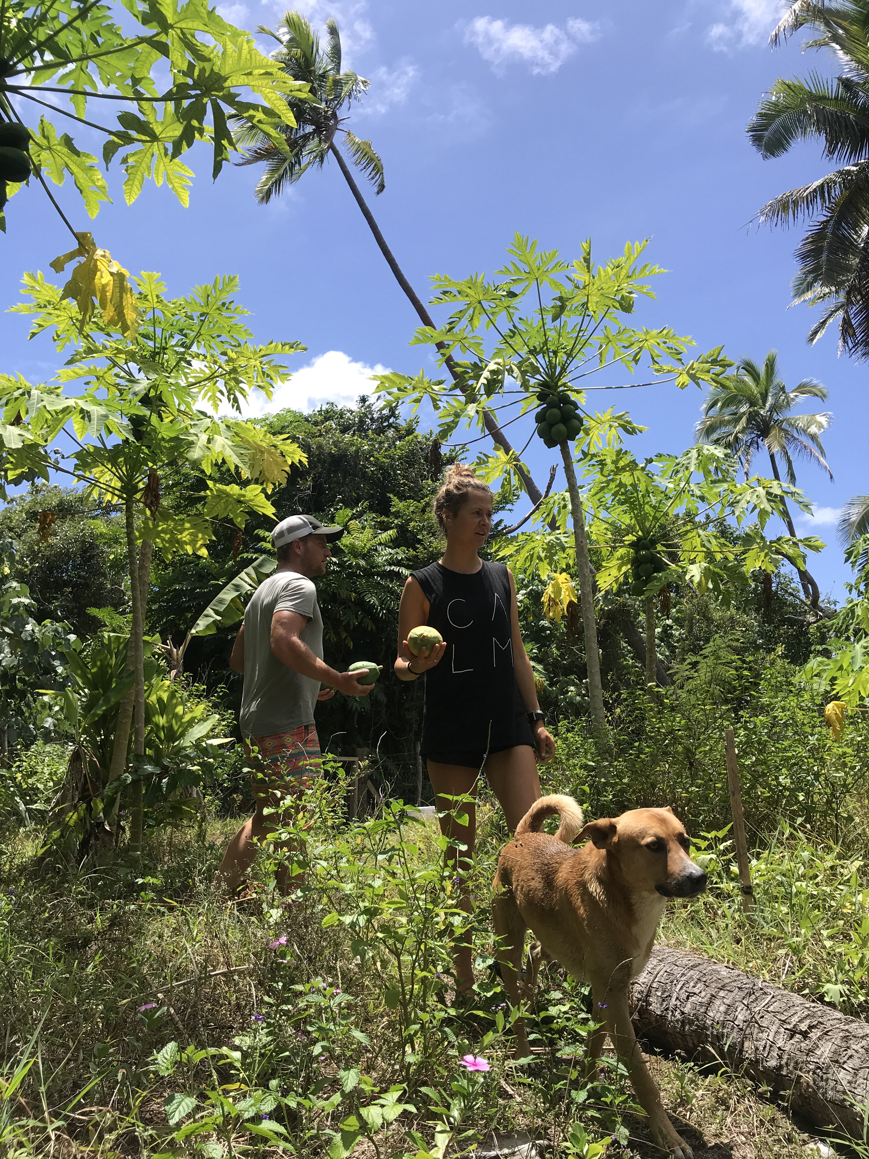 In the morning, Lauren gave us a tour of the secluded eco-resort onshore where she worked as a whale swim guide. The local Tongan caretaker and his dog Rain led us into the forest so we could harvest limes and coconuts. We filled up a wheelbarrow full and to thank him invited him to a beach barbecue that night.